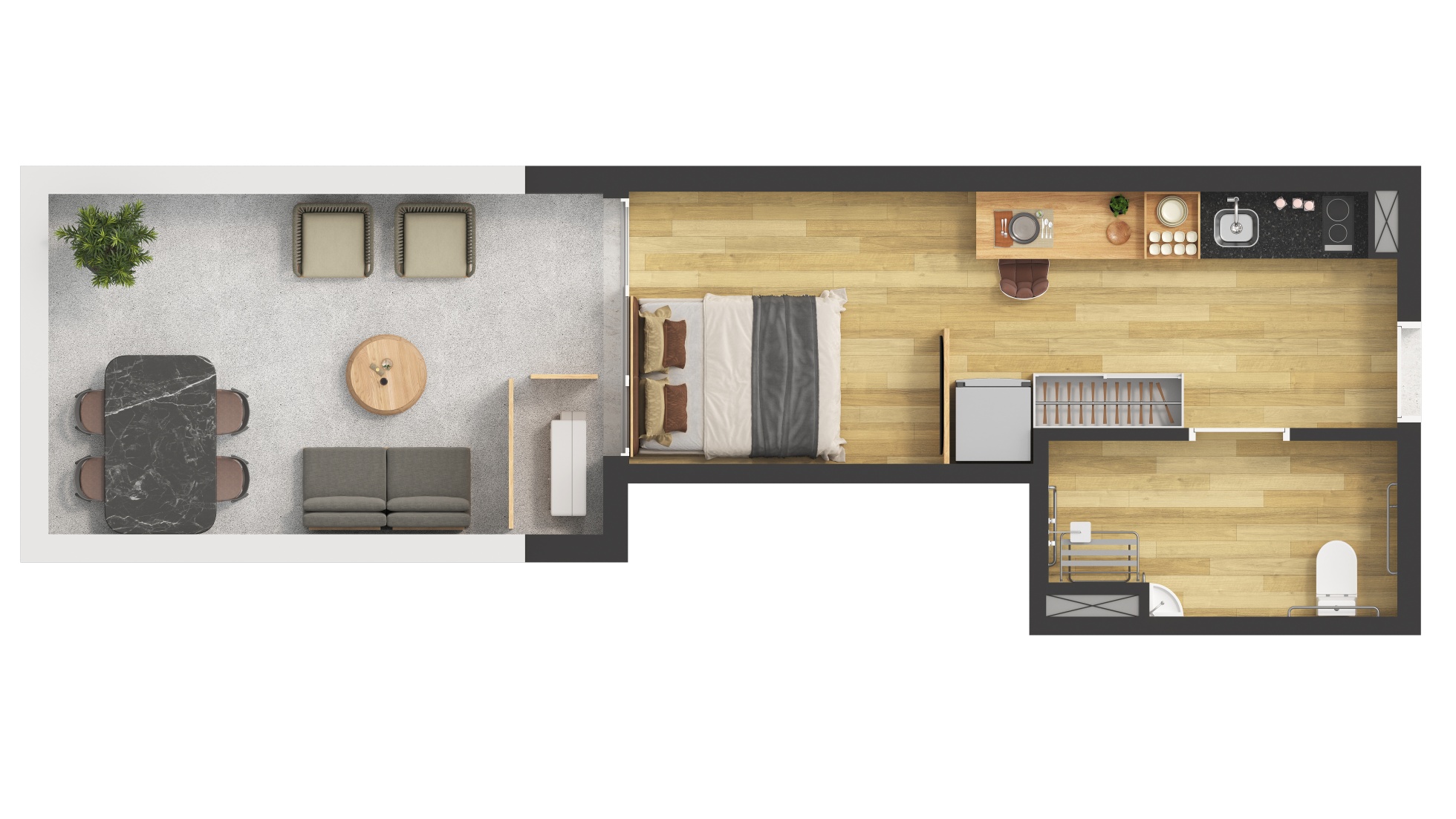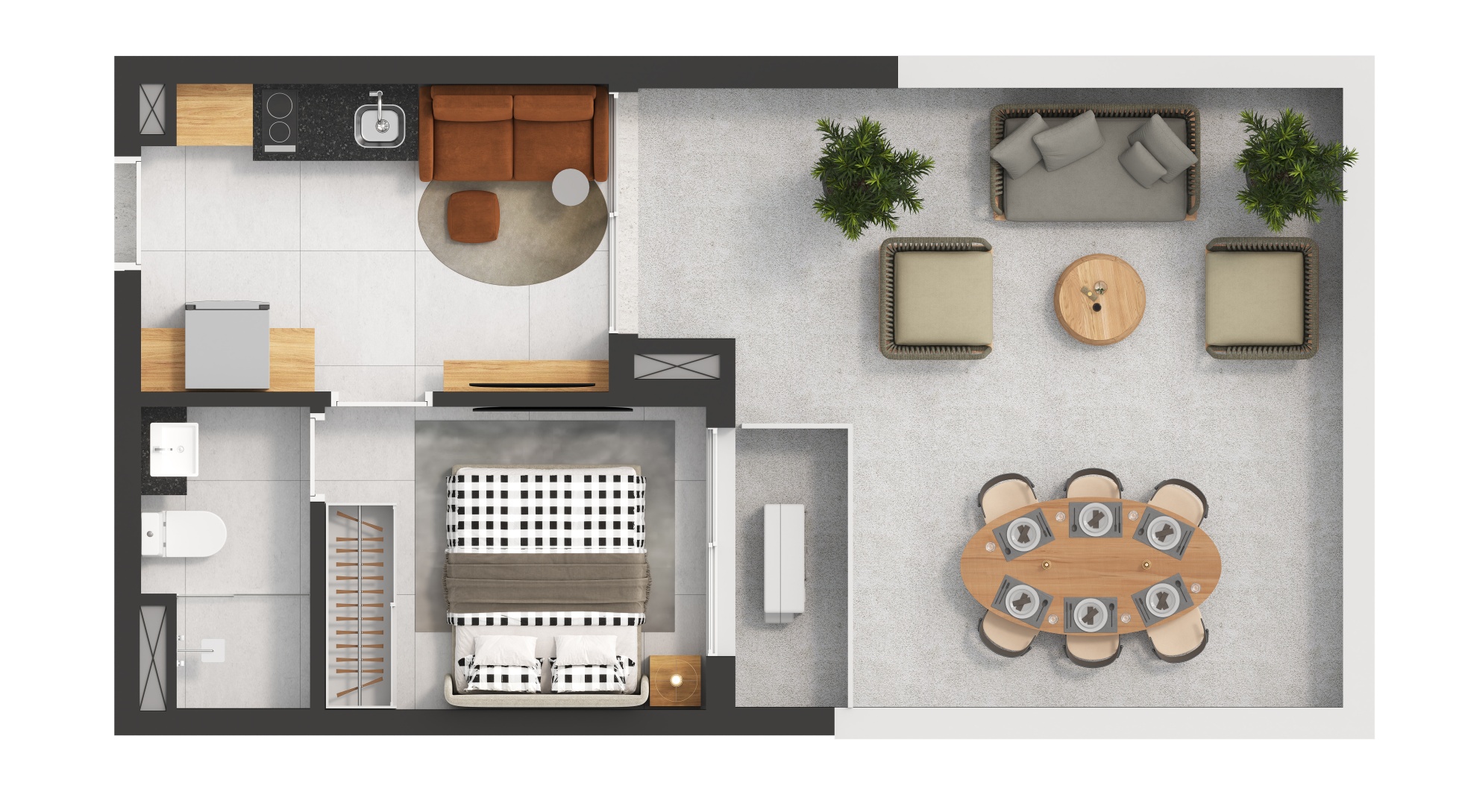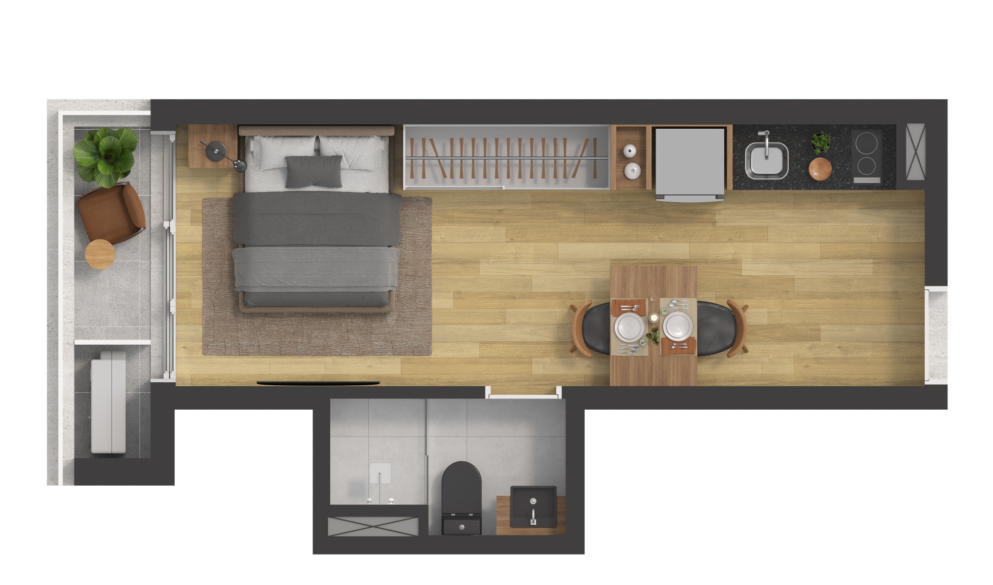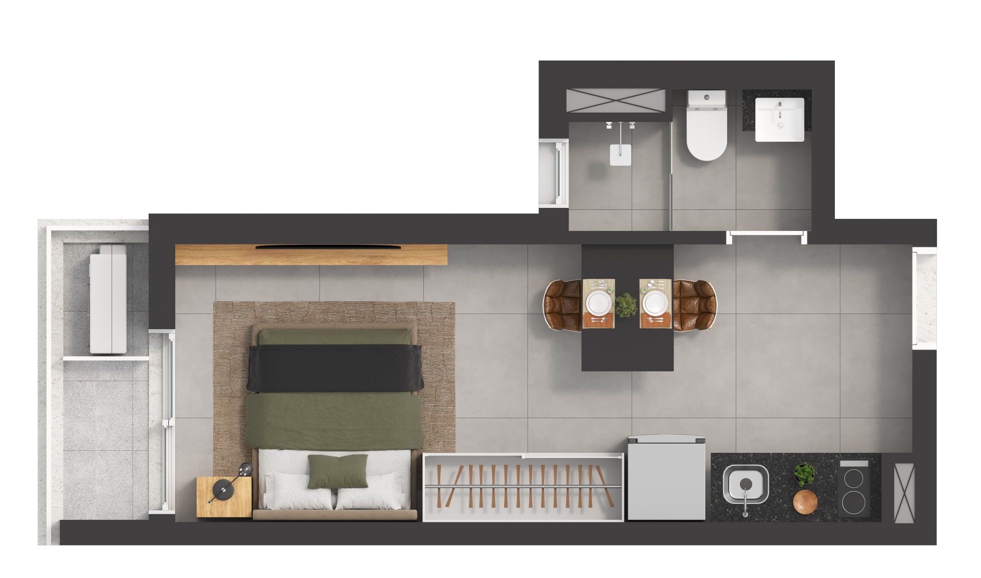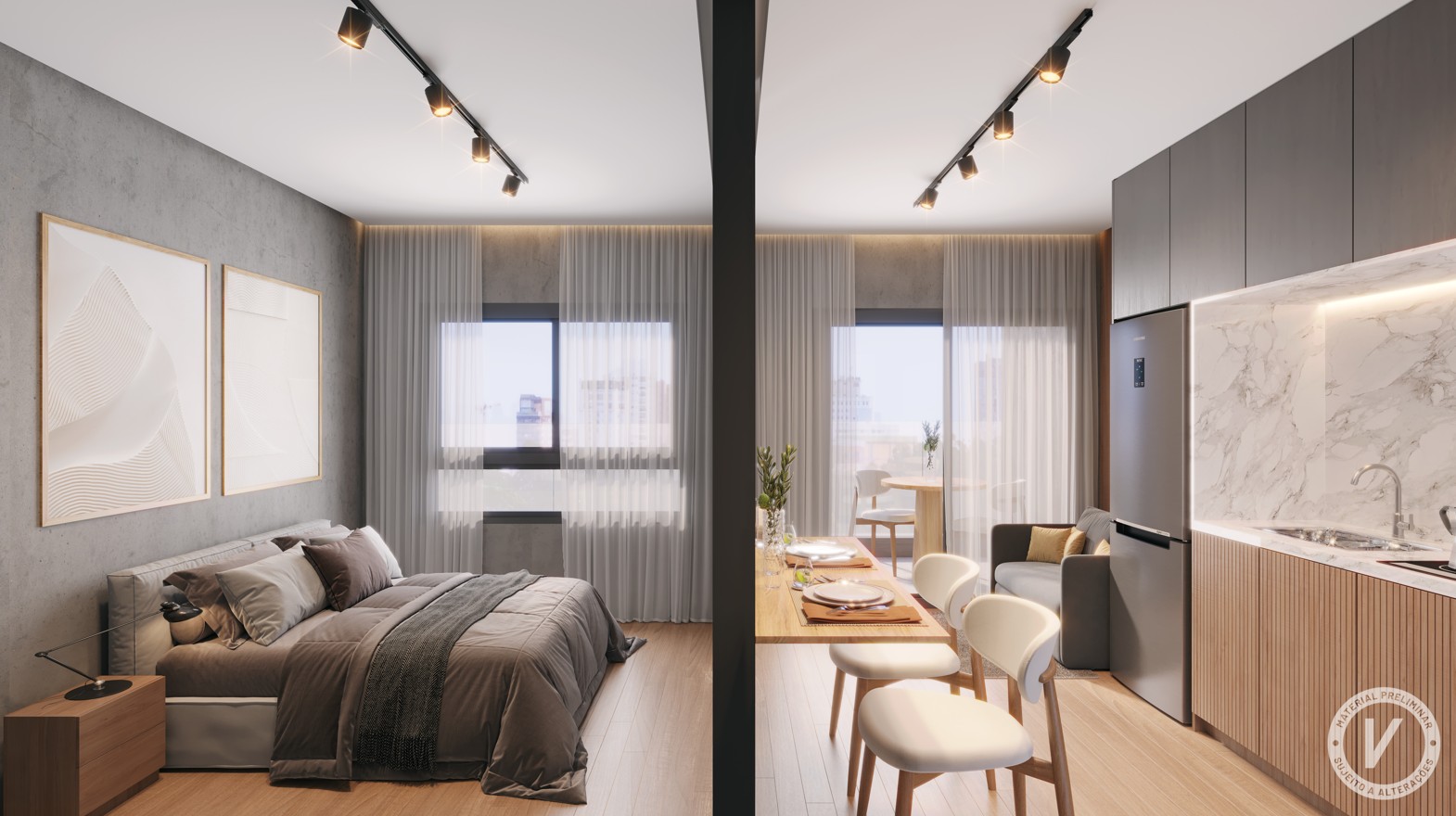 Tipologias: STUDIOS E 1 DORMITÓRIO