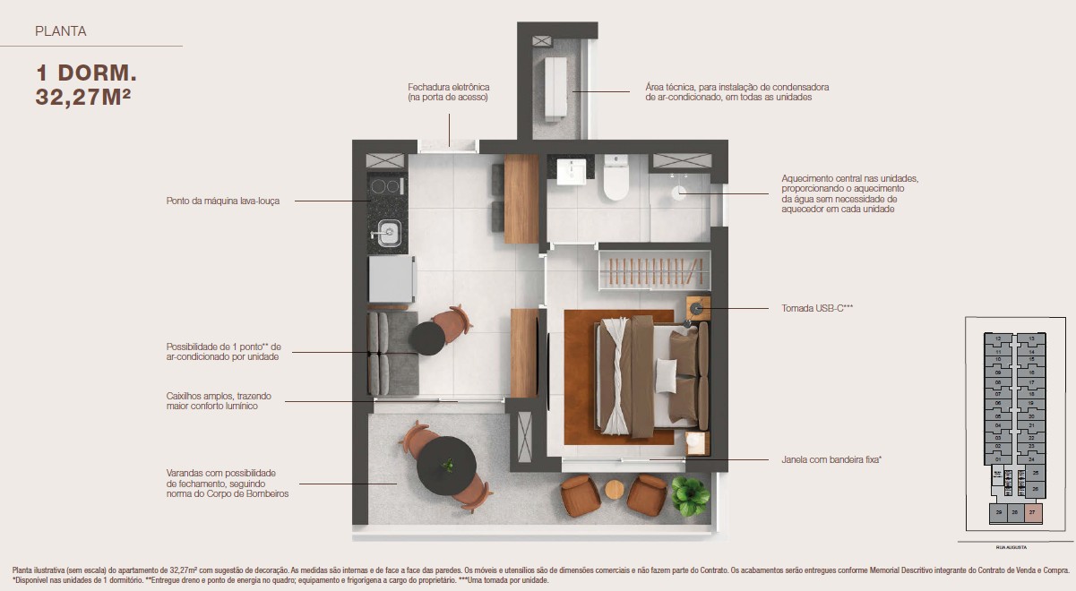 Studios e 1 Dorm. inteligentes de 20 a 32m²