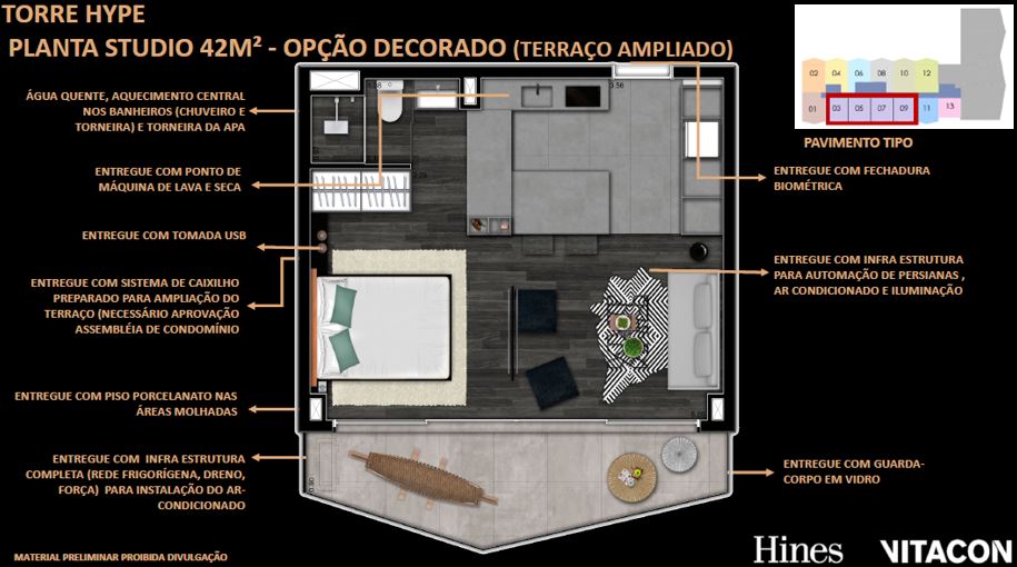 - STUDIO 42M² COM 1 VAGA MOBILIADO A VISTA OU FLUXO 30/70: R$ 1.330.000,00