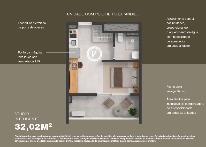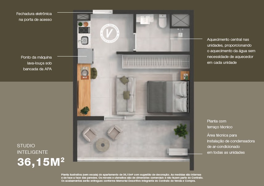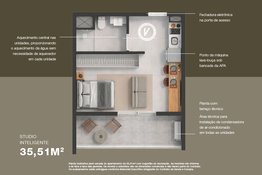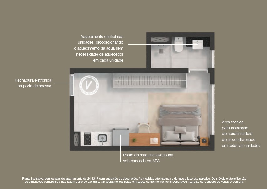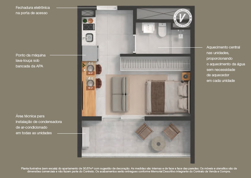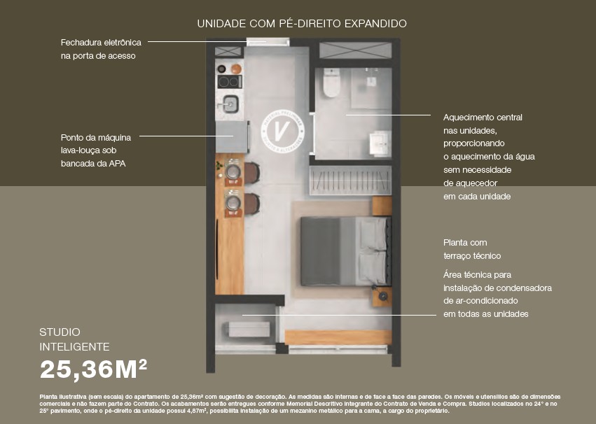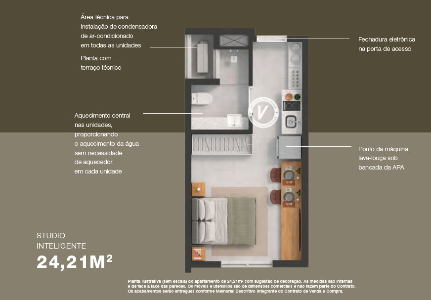 DIFERENCIAIS DAS UNIDADES: Porta de acesso entregue com fechadura eletrônica e Tomada USB