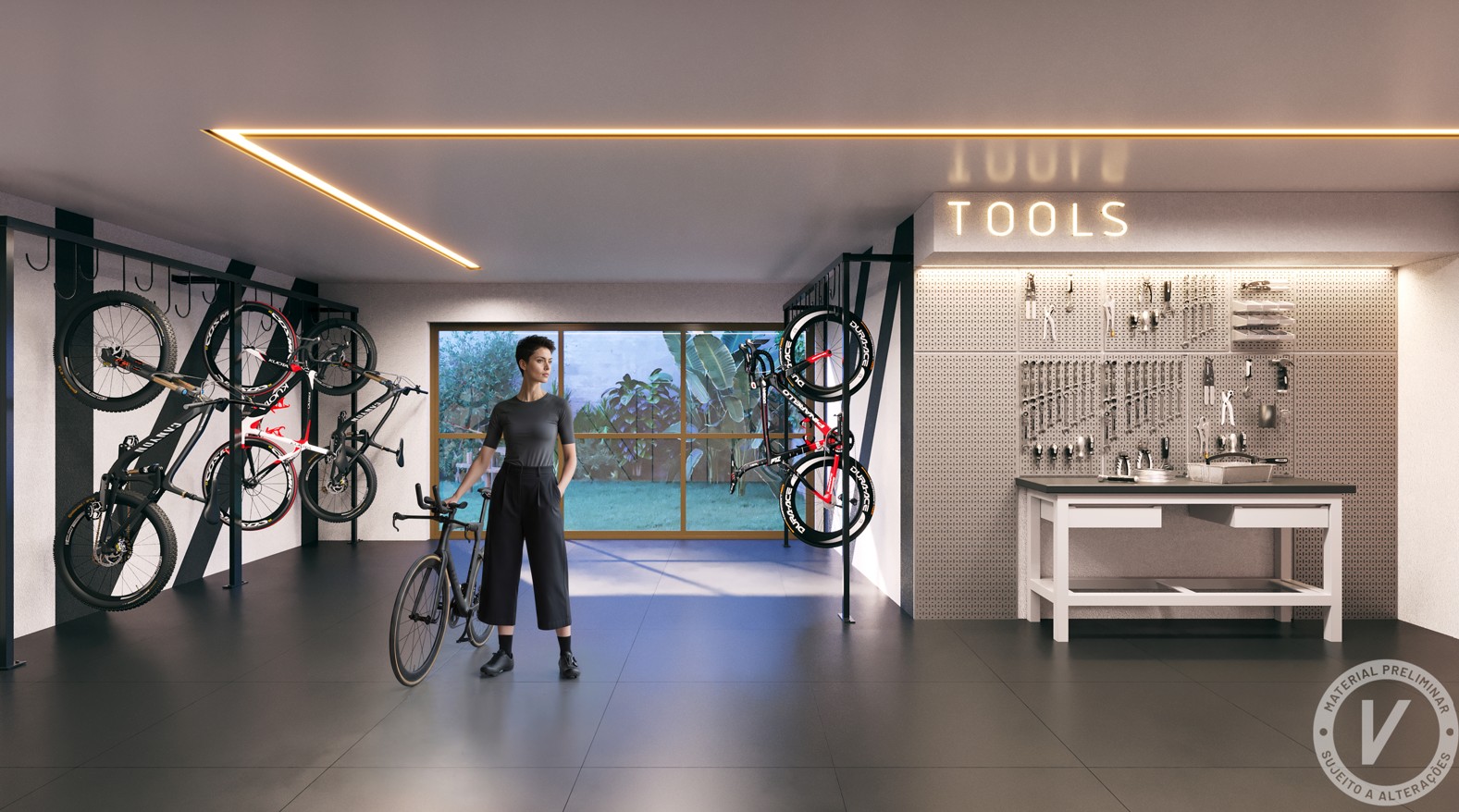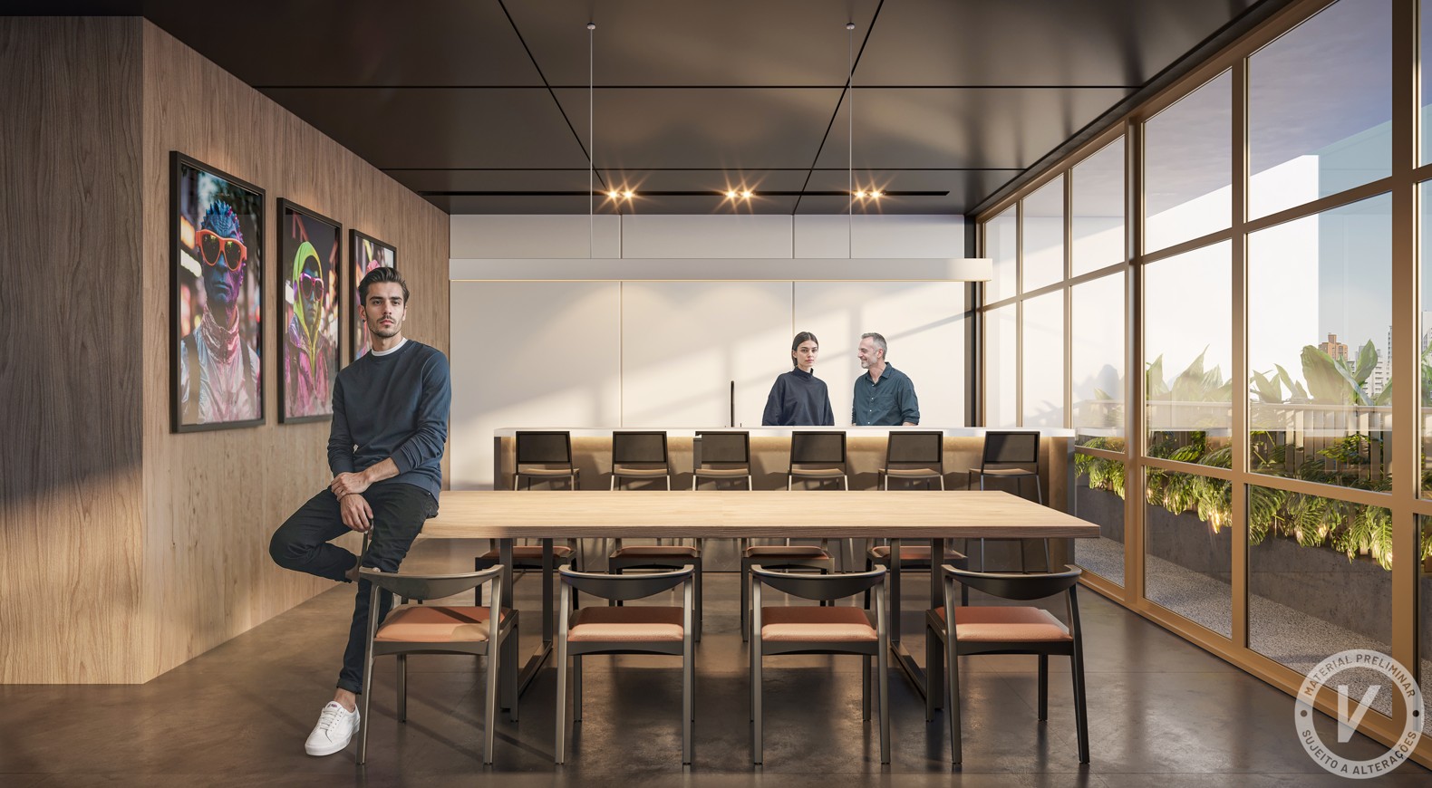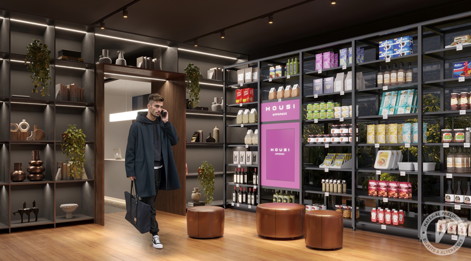 DIFERENCIAIS AREAS COMUNS: Bag Keeper; Bike Space; Coffee Point; Cokicthen Lounge; Delivery Space; Fitness Space by Life Fitness; Gourmet Lounge; Grab & Go; Laundry Share; Lobby Concierge; Mini Mall; Party; Podcast Studio; Tools Sharing; Working Pro