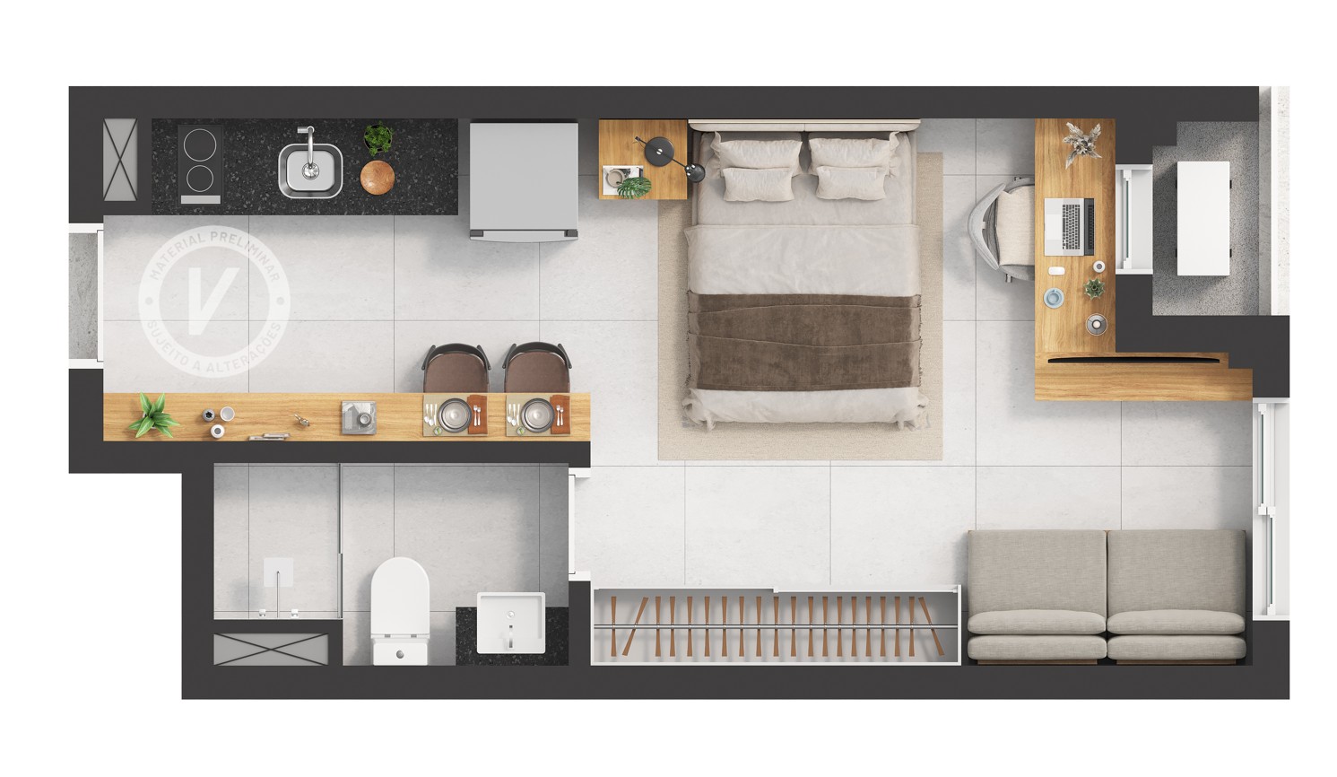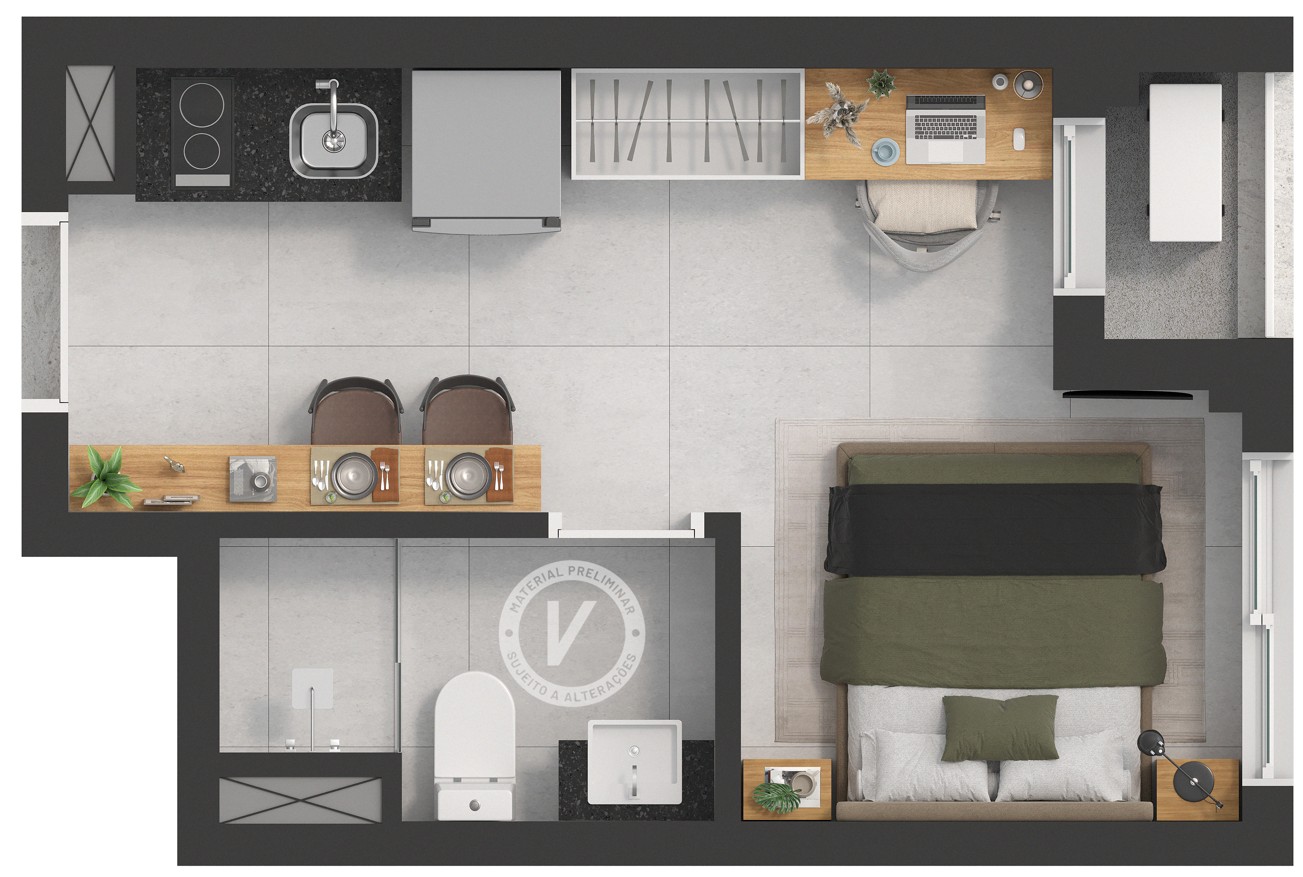 - STUDIO DE 20M² R2V NO FLUXO 30/70 A PARTIR DE: : R$ 495.000,00