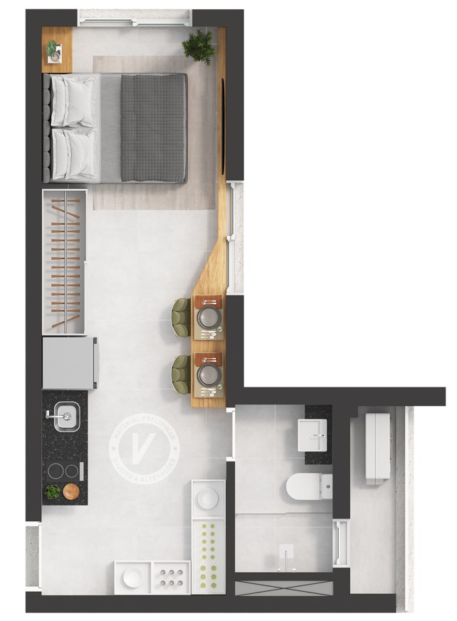 - Metragem: 19m² , 24m² , 30m² , 37m²