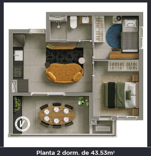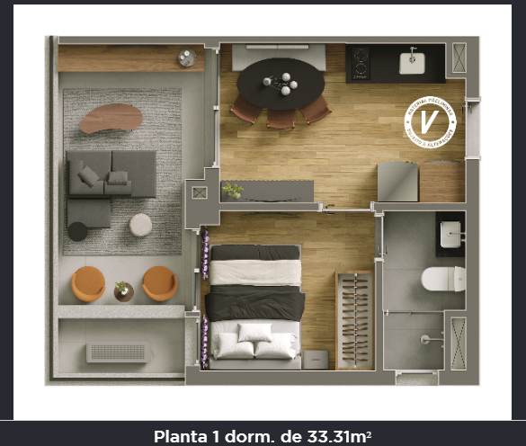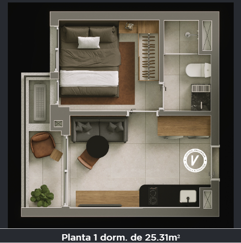- Dormitórios: 1 DORMITÓRIO