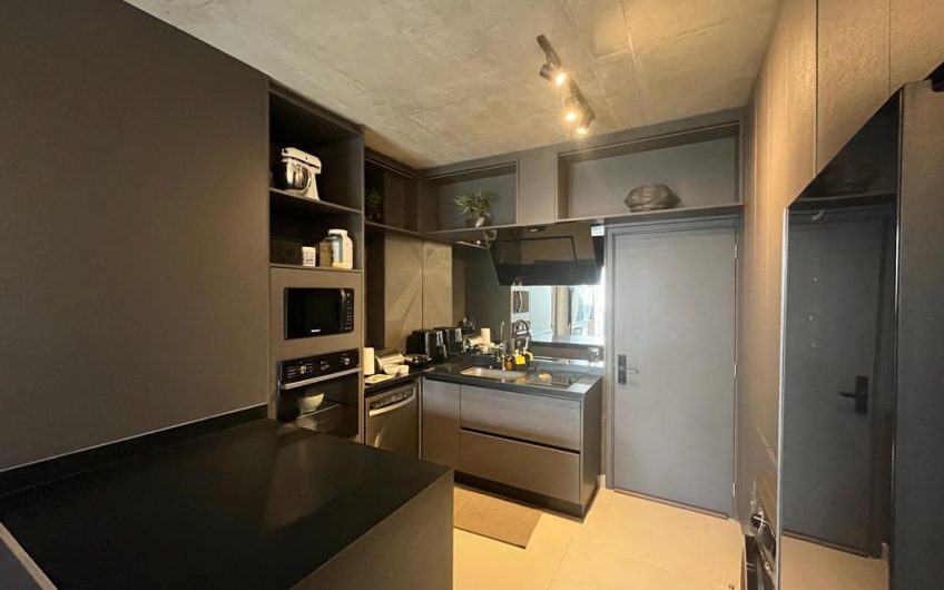 Studio de 57m² com 1 vaga, equipado e decorado pronto para morar ou rentabilizar,